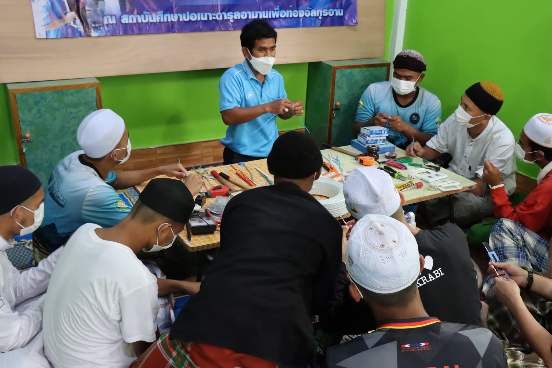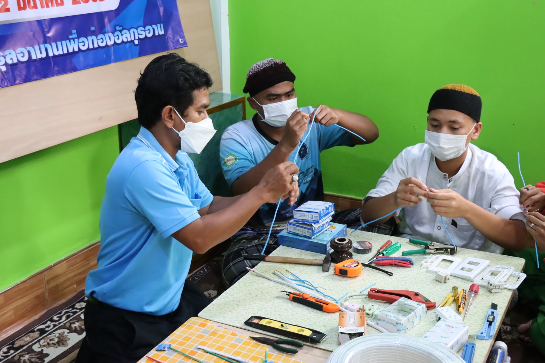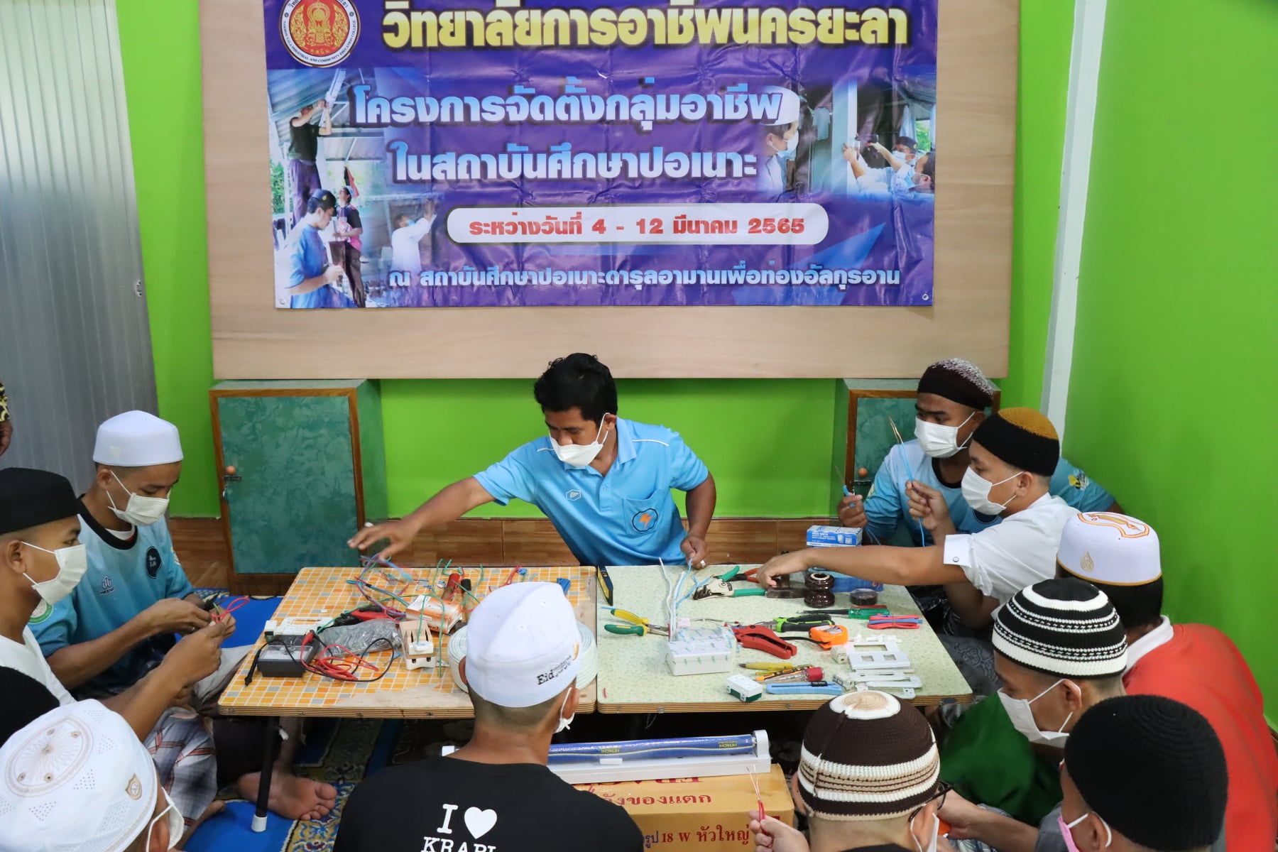 วันศุกร์ ที่ 4 มีนาคม 2565 นายอาหามะ ดือเร๊ะ รองผู้อำนวยการ ฝ่ายแผนงานและความร่วมมือ พร้อมด้วยนายสมาน บุกะอะ เจ้าหน้าที่งานความร่วมมือ นิเทศและติดตาม การดำเนินโครงการจัดตั้งกลุ่มอาชีพในสถาบันศึกษาปอเนาะ รายวิชา การติดตั้งไฟฟ้าในอาคาร ระหว่างวันที่ 4-12 มีนาคม 2565 ณ สถาบันศึกษาปอเนาะดารุลอามานเพื่อท่องอัลกุรอาน