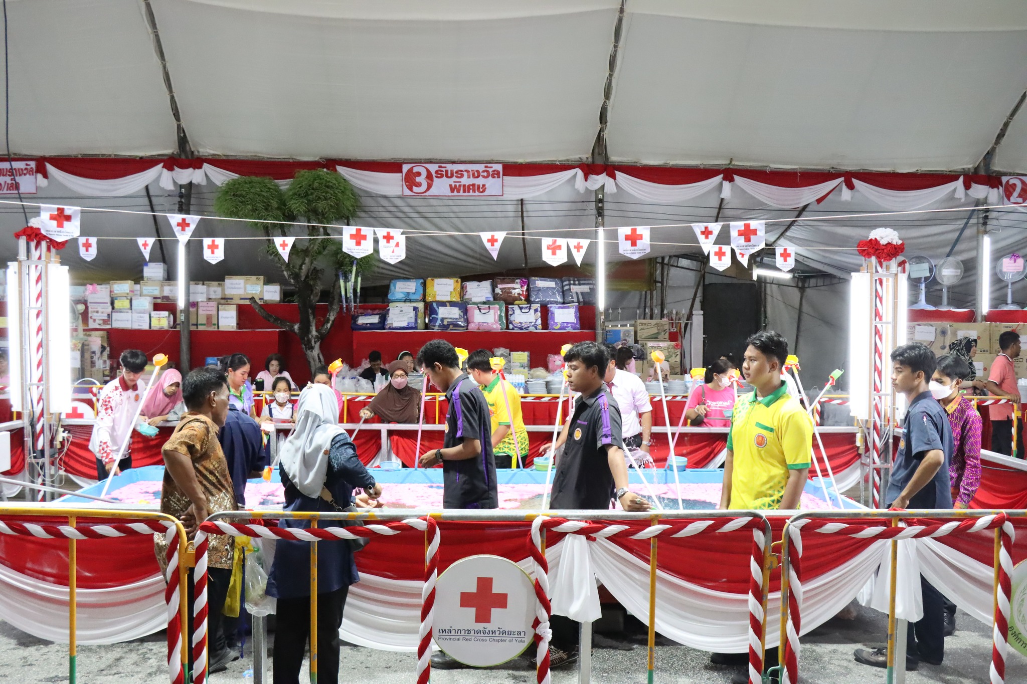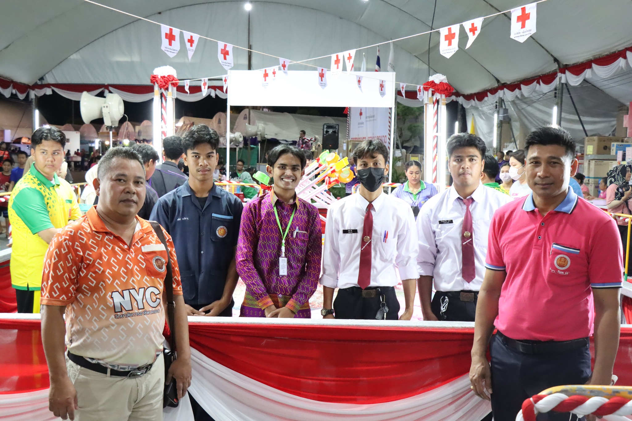 วันอังคาร ที่ 30 พฤษภาคม 2566 นายภาณุวัฒน์ บุญยะรัตน์ ผู้อำนวยการวิทยาลัยการอาชีพนครยะลา พร้อมด้วยนายชัยพันธุ์ กชกันพยันต์ รองผู้อำนวยการฝ่ายพัฒนากิจการนักเรียน นักศึกษา และคณะครูที่ปรึกษา อวท. พร้อมด้วยนักศึกษา อวท. วก.นครยะลา นักศึกษาจำนวน 10 คน ปฏิบัติหน้าที่บริการและอำนวยความสะดวกให้แก่ผู้ซื้อบัตรนาวากาชาด ในการตักตลับบรรจุสลากในบริเวณเรือนาวากาชาด งานสมโภชหลักเมืองและงานกาชาดจังหวัดยะลา ครั้งที่ 61 ประจำปี 2566