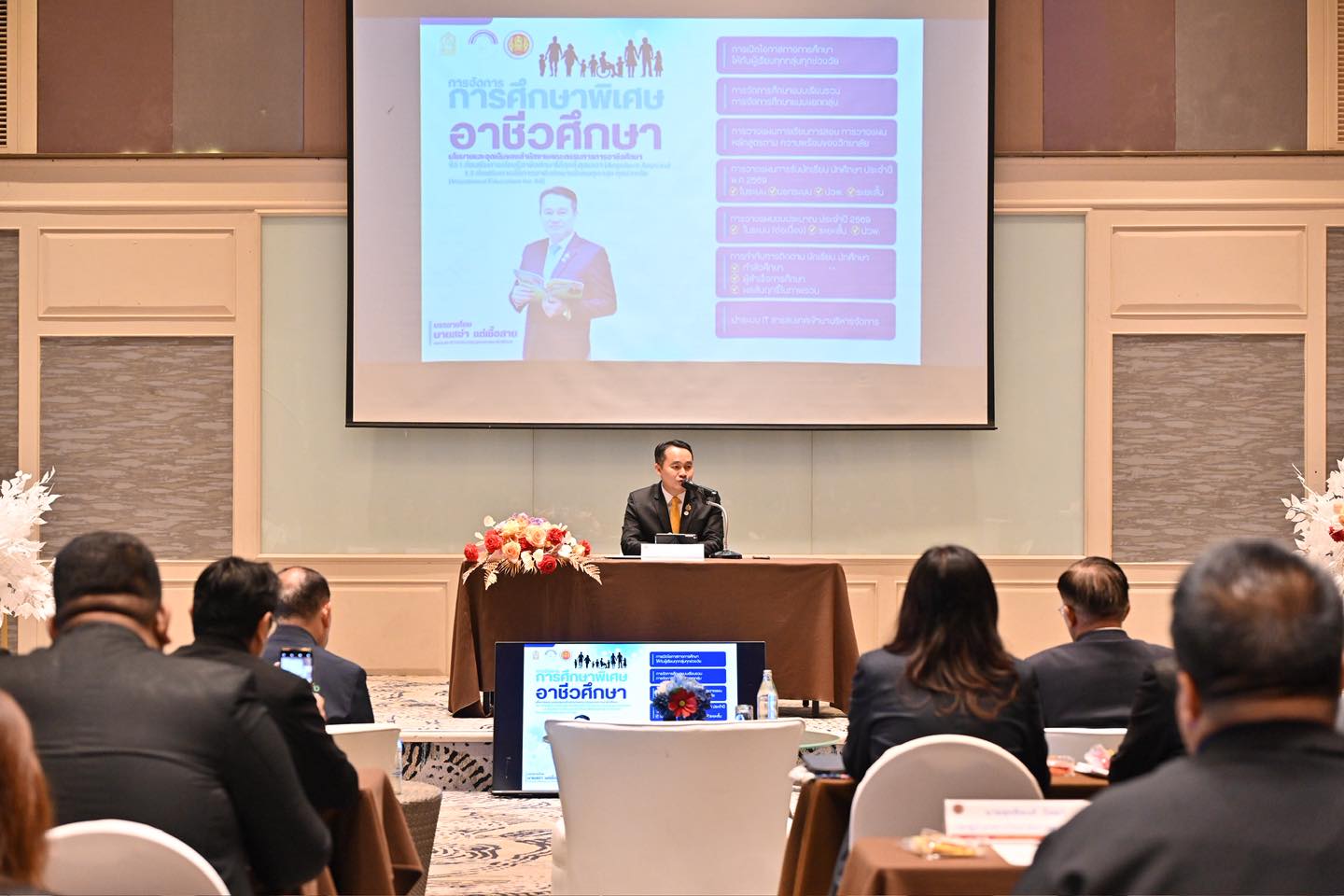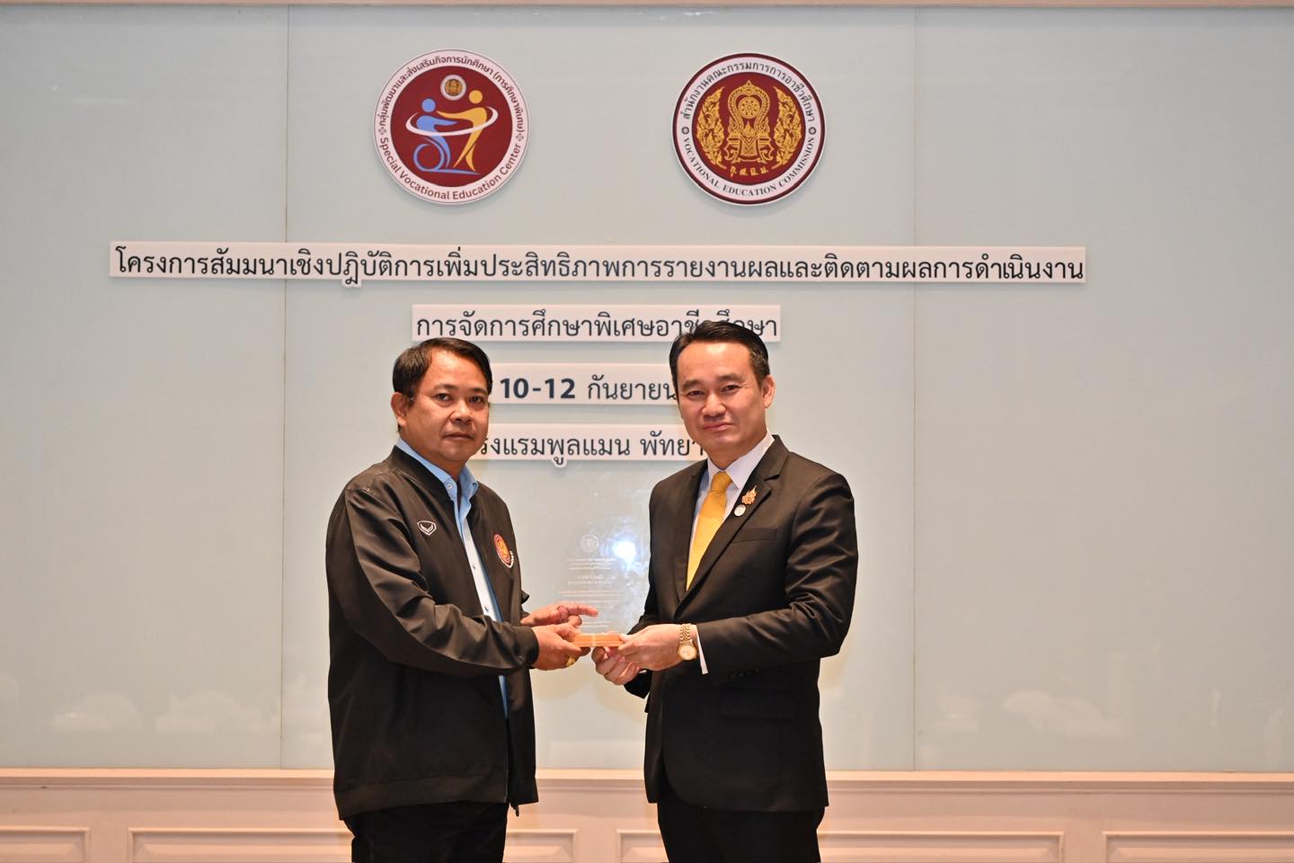 วันศุกร์ ที่ 12 กันยายน 2568 นายไรฮ้าน กองสิน ผู้อำนวยการวิทยาลัยการอาชีพนครยะลา มอบหมายให้ นายชัยพันธ์ุ กชกันพยันต์ รองผู้อำนวยการ ฝ่ายวิชาการ นางสาววรารัตน์ เครือทอง ครู ทำหน้าที่ รองผู้อำนวยการฝ่ายแผนงานและความร่วมมือ ครู และบุคลากรทางการศึกษา เข้าร่วมโครงการสัมมนาเชิงปฏิบัติการเพิ่มประสิทธิภาพการรายงานผลและติดตามการดำเนินงานการจัดการศึกษาพิเศษอาชีวศึกษา พร้อมบรรยายพิเศษ มอบโล่เกียรติยศและเกียรติบัตรแก่สถานศึกษา ผู้บริหาร และบุคคลผู้มีส่วนช่วยในการสนับสนุนการขับเคลื่อนการจัดการศึกษาพิเศษอาชีวศึกษา ณ โรงแรมพลูแมน พัทยา จี จังหวัดชลบุรี