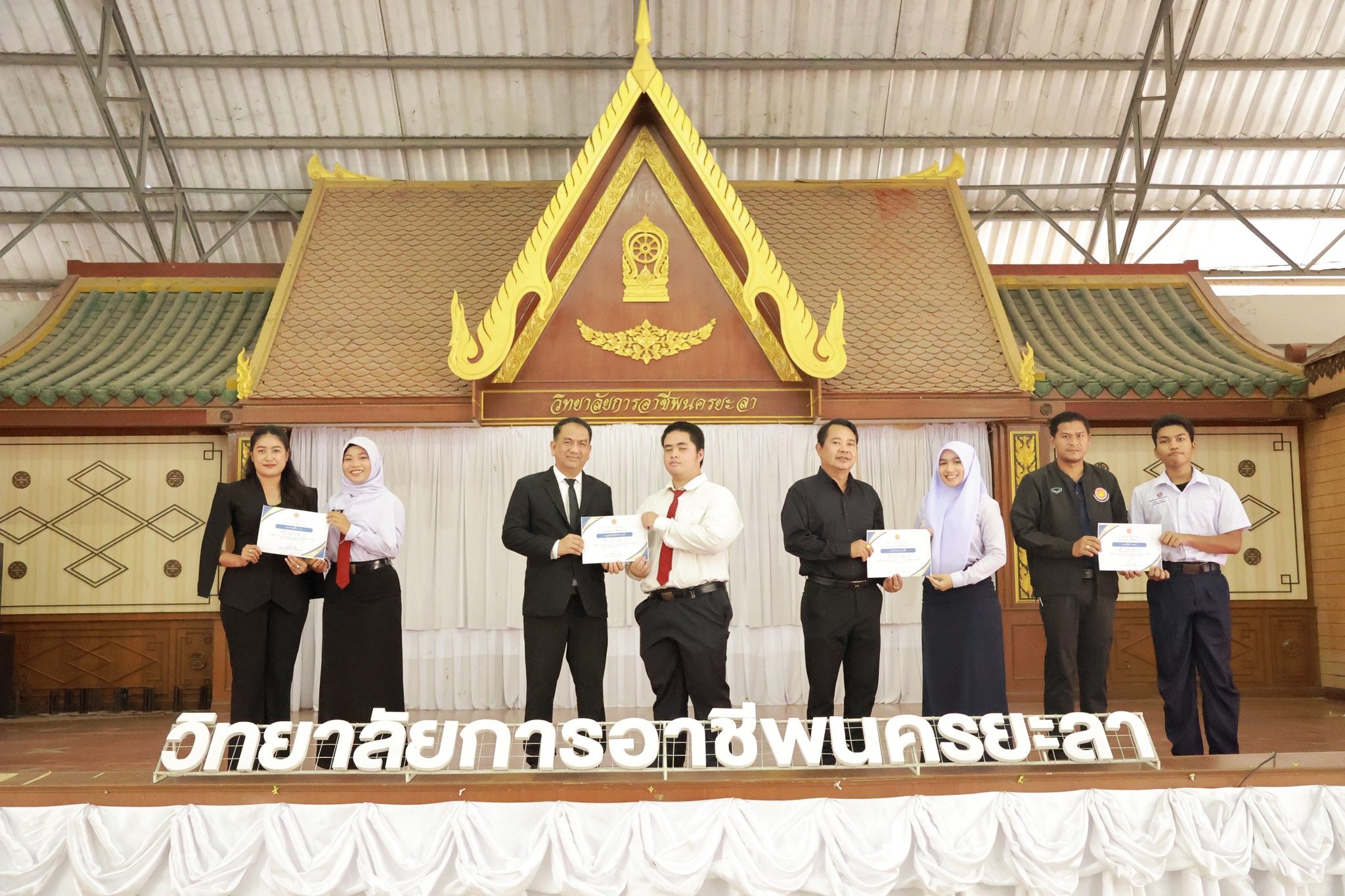 วันอาทิตย์ ที่ 2 พฤศจิกายน 2568 วิทยาลัยการอาชีพนครยะลา พร้อมด้วยคณะผู้บริหาร คณะครู และบุคลากรทางการศึกษา ดำเนินโครงการประชุมผู้ปกครอง และมอบทุนการศึกษาให้กับนักเรียน นักศึกษา ประจำภาคเรียนที่ 2 ปีการศึกษา 2568 หลักสูตรประกาศนัยบัตรวิชาชีพ (ปวช.) และหลักสูตรประกาศนัยบัตรวิชาชีพชั้นสูง (ปวส.) ณ หอประชุม วิทยาลัยการอาชีพนครยะลา