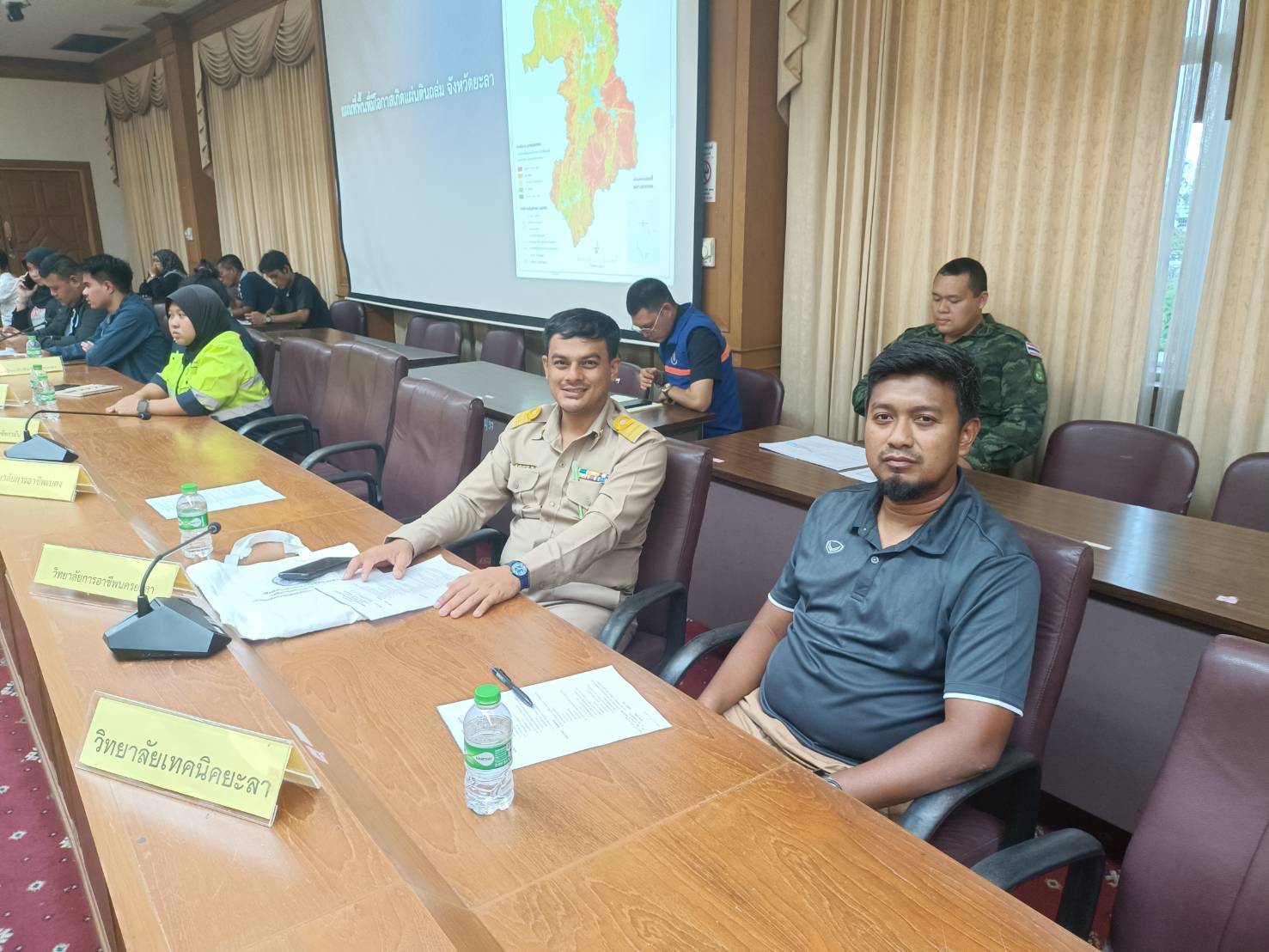 574072643 812902691669511 6168045641774840931 nวันจันทร์ ที่ 3 พฤศจิกายน 2568 นายไรฮ้าน กองสิน ผู้อำนวยการวิทยาลัยการอาชีพนครยะลา มอบหมายให้ นายมูฮัมหมัดฟารีมิง  อิซอ หัวหน้าโครงการพิเศษและบริการชุมชน เข้าร่วมประชุมเตรียมความพร้อมรับสถานการณ์อุทกภัยและคลื่นลมแรงในพื้นที่ภาคใต้ ณ ห้องประชุมศรียะลา อาคาร 3 ชั้น 3 ศาลกลางจังหวัดยะลา
