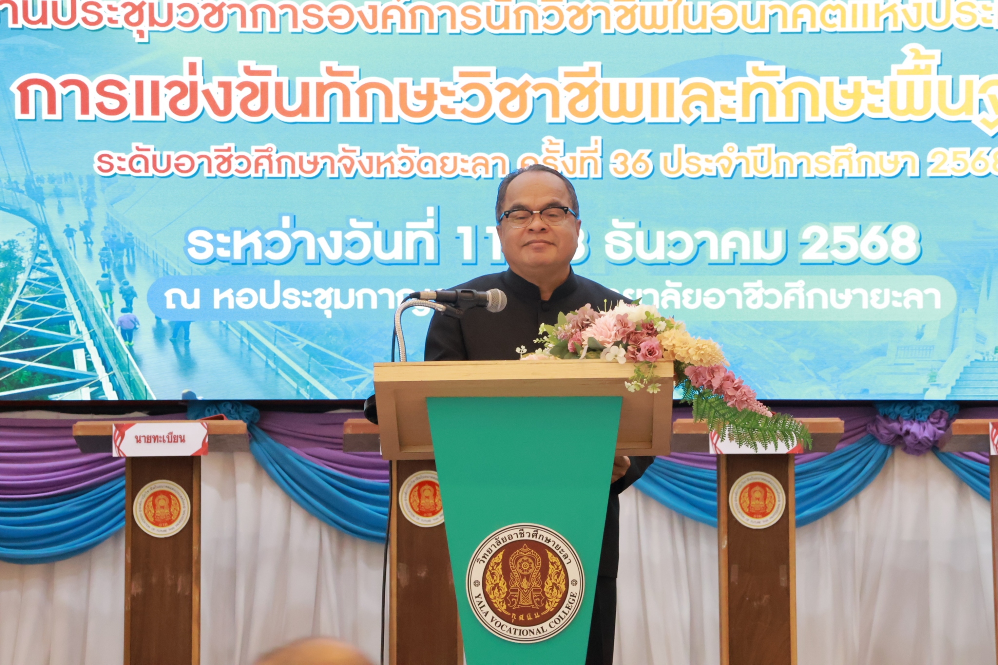 วันพฤหัสบดี ที่ 11 ธันวาคม 2568 วิทยาลัยการอาชีพนครยะลา พร้อมด้วยคณะผู้บริหาร คณะครู บุคลากรทางการศึกษา และนักเรียน นักศึกษา เข้าร่วมงานประชุมวิชาการองค์การนักวิชาชีพในอนาคตแห่งประเทศไทย การแข่งขันทักษะวิชาชีพและทักษะพื้นฐาน ระดับอาชีวศึกษาจังหวัดยะลา ครั้งที่ 36 ประจำปีการศึกษา 2568 ระหว่างวันที่ 11-13 ธันวาคม 2568 ณ หอประชุมกาญจนาภิเษก วิทยาลัยอาชีวศึกษายะลา