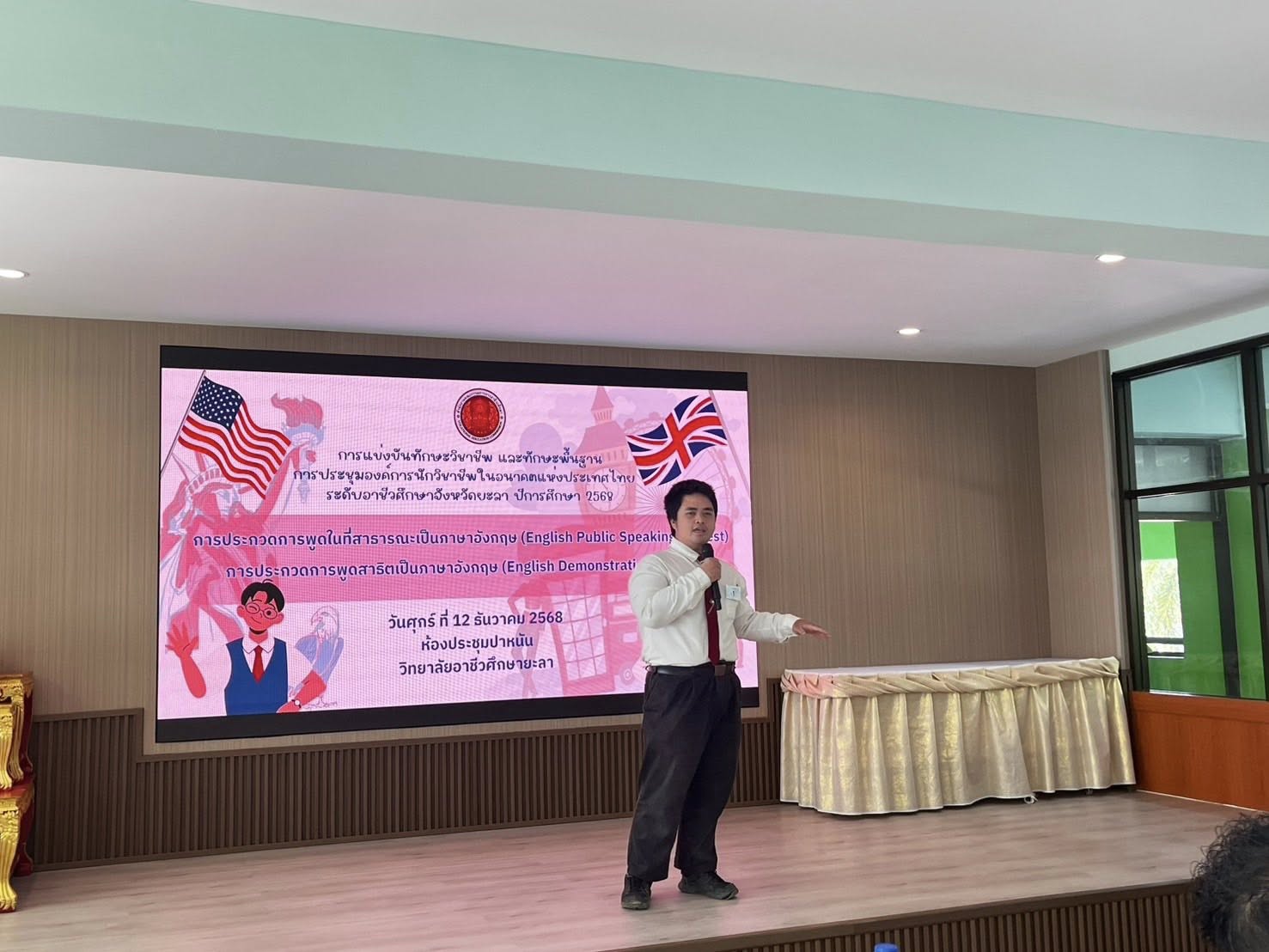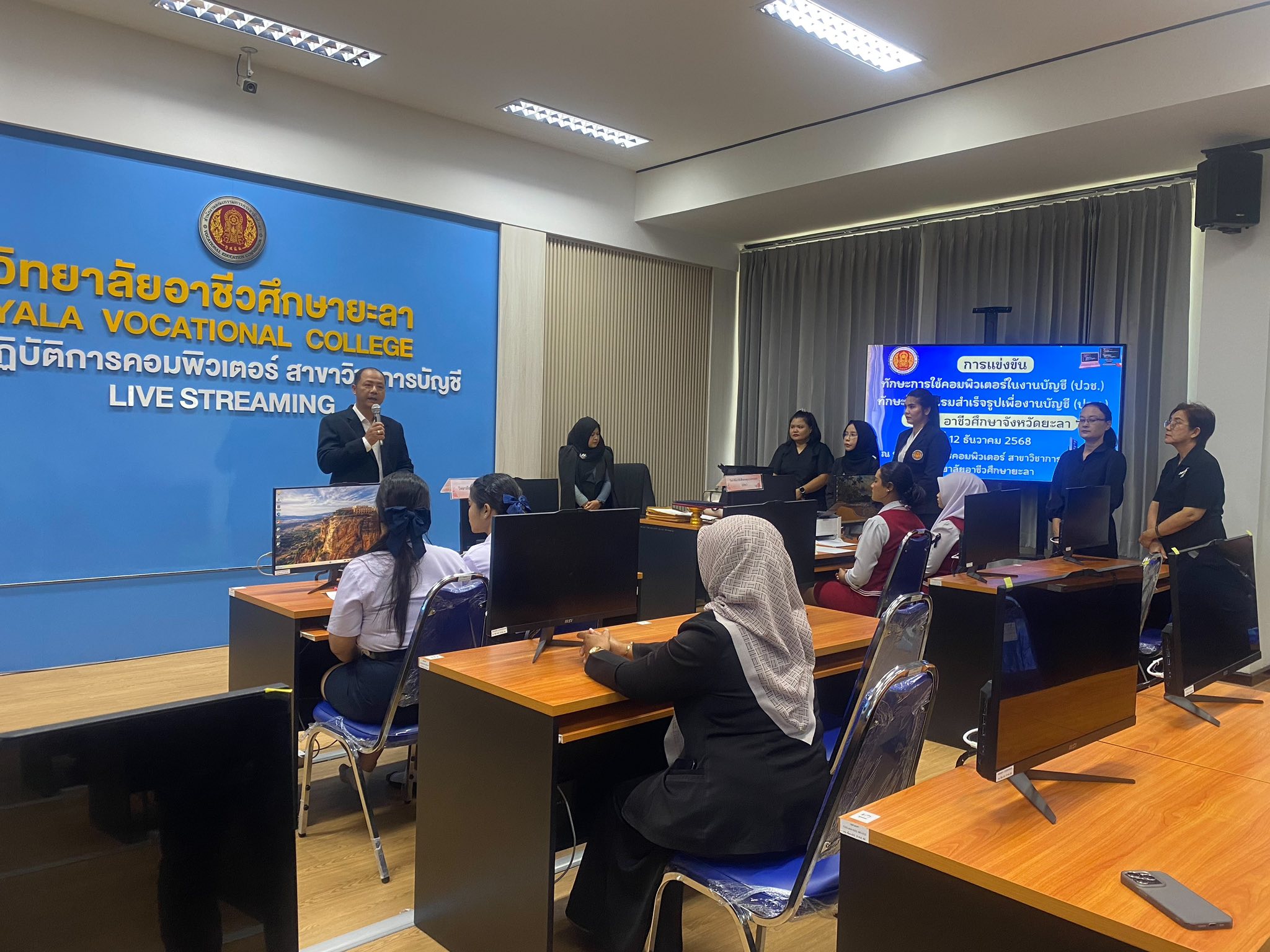 วันศุกร์ ที่ 12 ธันวาคม 2568 วิทยาลัยการอาชีพนครยะลา พร้อมด้วยคณะผู้บริหาร คณะครู บุคลากรทางการศึกษา และนักเรียน นักศึกษา เข้าร่วมการแข่งขันทักษะวิชาชีพ และทักษะพื้นฐาน ระดับอาชีวศึกษาจังหวัดยะลา ครั้งที่ 36 ประจำปีการศึกษา 2568 ระหว่างวันที่ 11-13 ธันวาคม 2568 ณ วิทยาลัยอาชีวศึกษา และวิทยาลัยเทคนิคยะลา