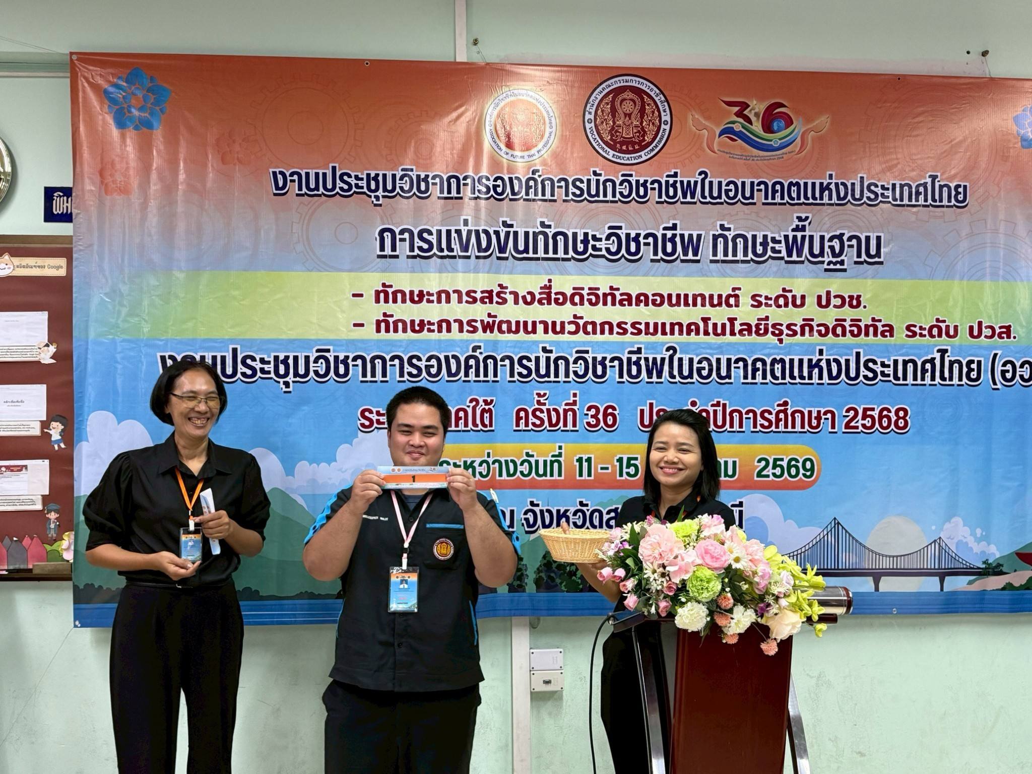 615410623 867300402896406 6792495800988212587 nวันพุธ ที่ 14 มกราคม 2569 วิทยาลัยการอาชีพนครยะลา พร้อมด้วยคณะผู้บริหาร คณะครู บุคลากรทางการศึกษา และนักเรียน นักศึกษา เข้าร่วมการแข่งขันทักษะวิชาชีพระดับ ปวส. รายการ "ทักษะการพัฒนานวัตกรรมเทคโนโลยีธุรกิจดิจิทัล" โดยมีนักศึกษาสาขาวิชาเทคโนโลยีธุรกิจดิจิทัล พร้อมด้วยนายมูฮำหมัดอีรชาร์ด มะดิง ครูสาขาวิชาคอมพิวเตอร์ธุรกิจ ประจำศูนย์ฝึกวิชาชีพอำเภอบันนังสตา ครูผู้ควบคุม เป็นตัวแทนเข้าร่วมแข่งขันทักษะวิชาชีพระดับ ปวส. ในงานประชุมวิชาการองค์การนักวิชาชีพ (อวท.) การแข่งขันทักษะวิชาชีพระยะสั้น และทักษะวิชาชีพ ระดับภาคใต้ ประจำปีการศึกษา 2568 ระหว่างวันที่ 12-14 มกราคม 2569 ณ วิทยาลัยอาชีวศึกษาสุราษฎร์ธานี จังหวัดสุราษฎร์ธานี