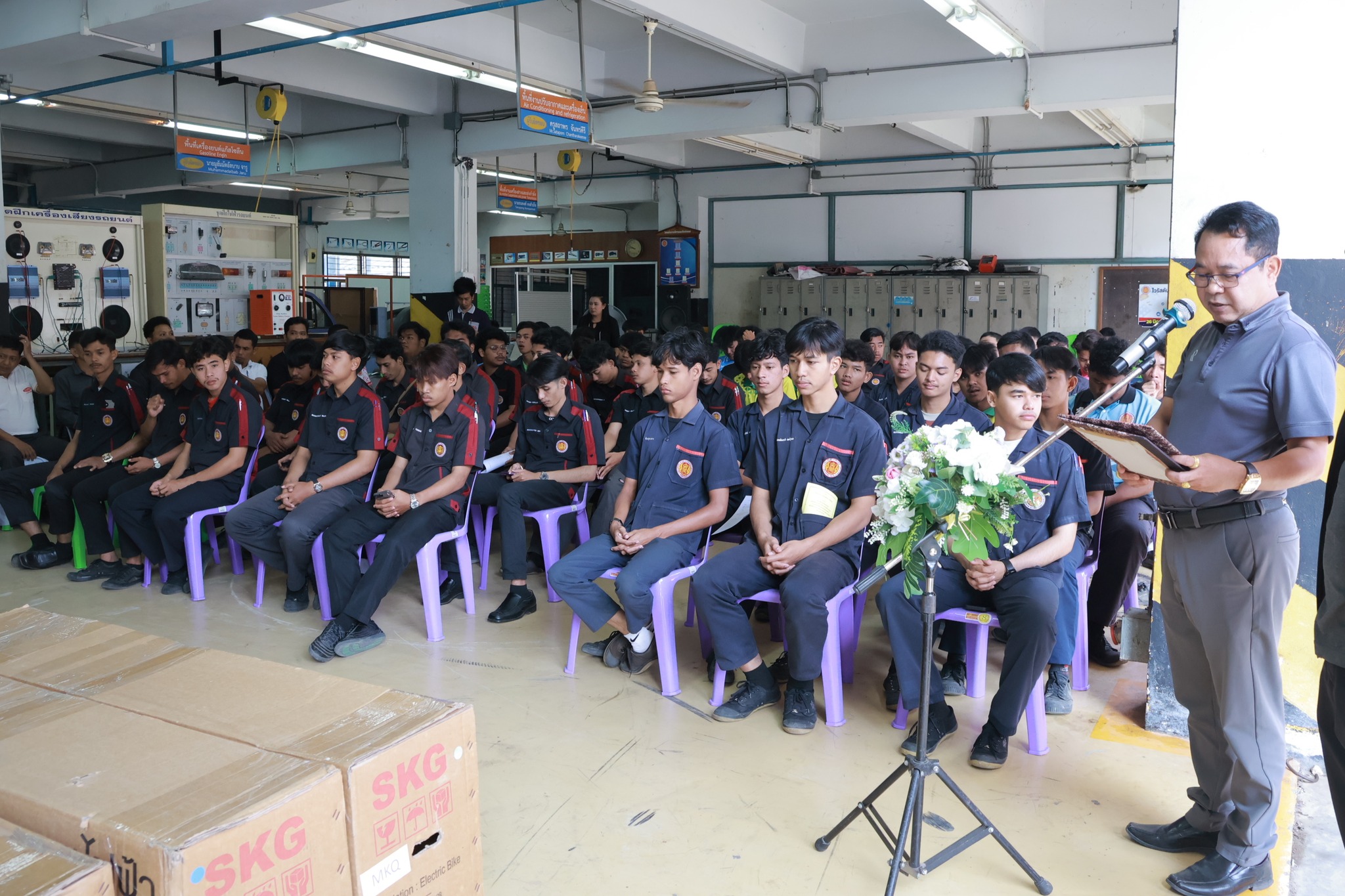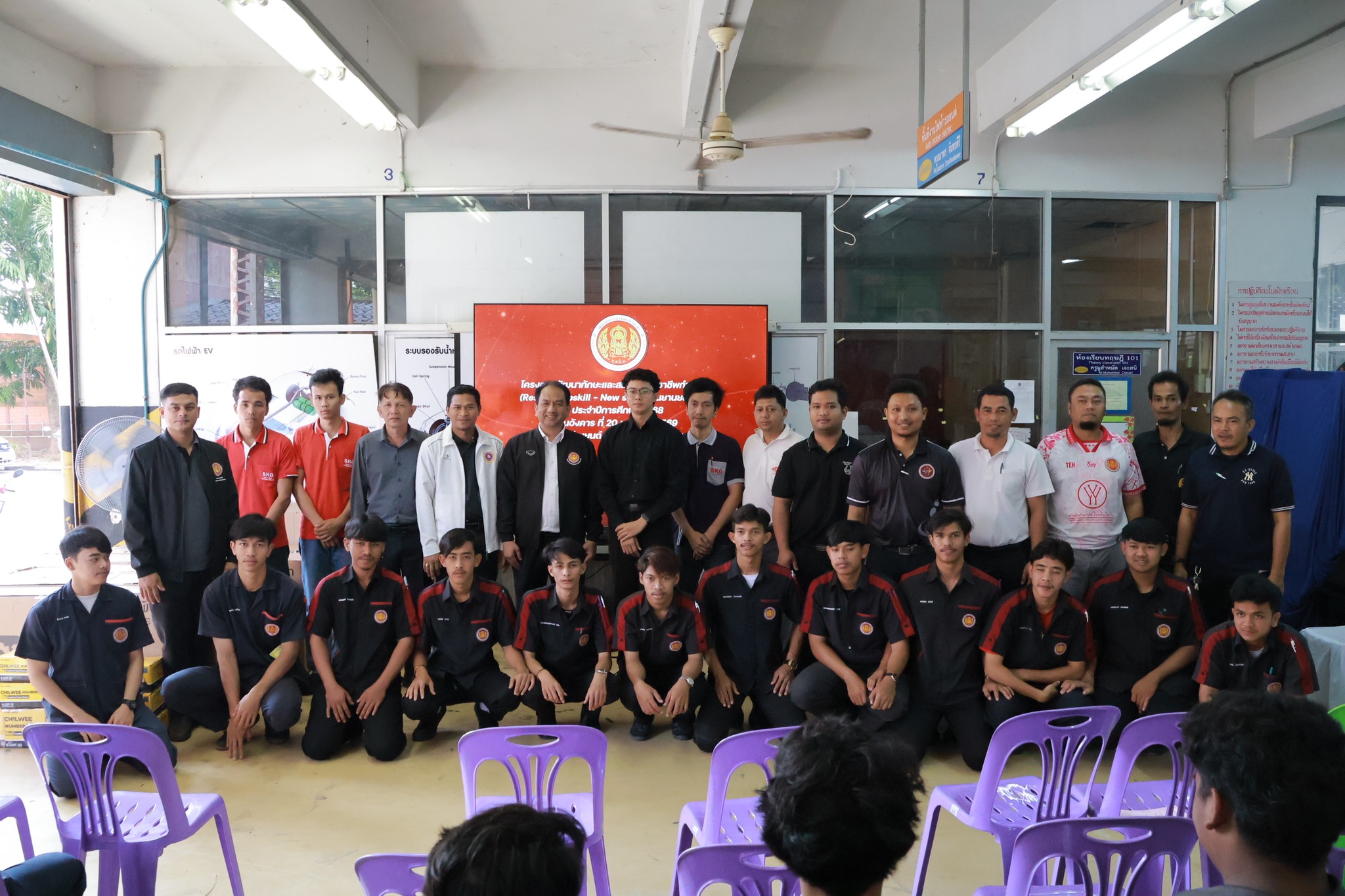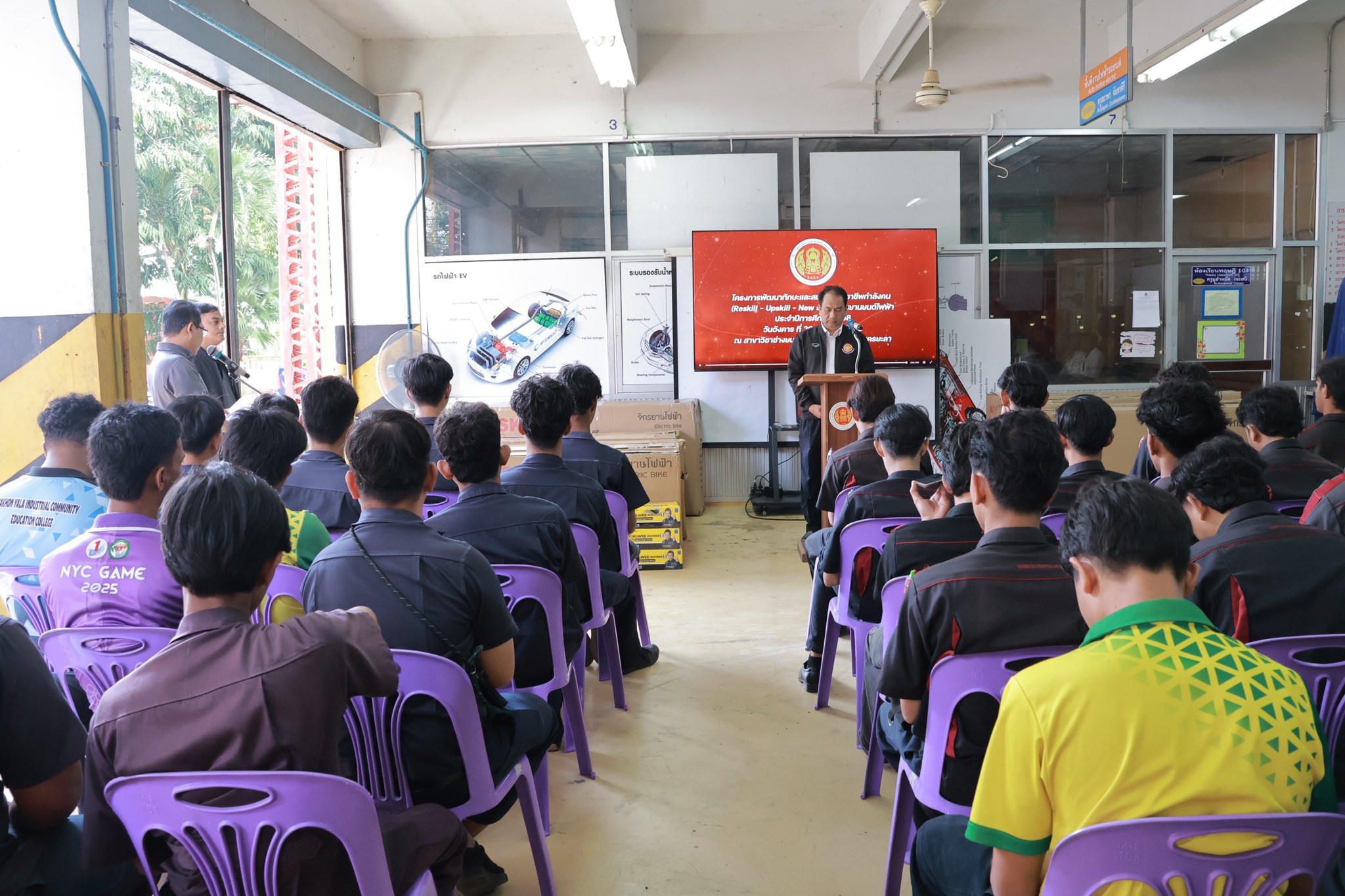 วันอังคาร ที่ 20 มกราคม 2569 นายไรฮ้าน กองสิน ผู้อำนวยการวิทยาลัยการอาชีพนครยะลา พร้อมคณะผู้บริหาร คณะครูสาขาวิชาช่างยนต์ ดำเนินโครงการพัฒนาทักษะและสมรรถนะวิชาชีพกำลังคน (Reskill - Upskill - New skill) ด้านยานยนต์ไฟฟ้า ประจำปีการศึกษา 2568 โดยมี นายศุภกร ศรีสวัสดิ์ และนายวิษนุพงศ์ รุ่งเรือง จากบริษัท King Chin Power เป็นวิทยากรให้ความรู้ในครั้งนี้ ณ แผนกสาขาวิชาช่างยนต์ วิทยาลัยการอาชีพนครยะลา
