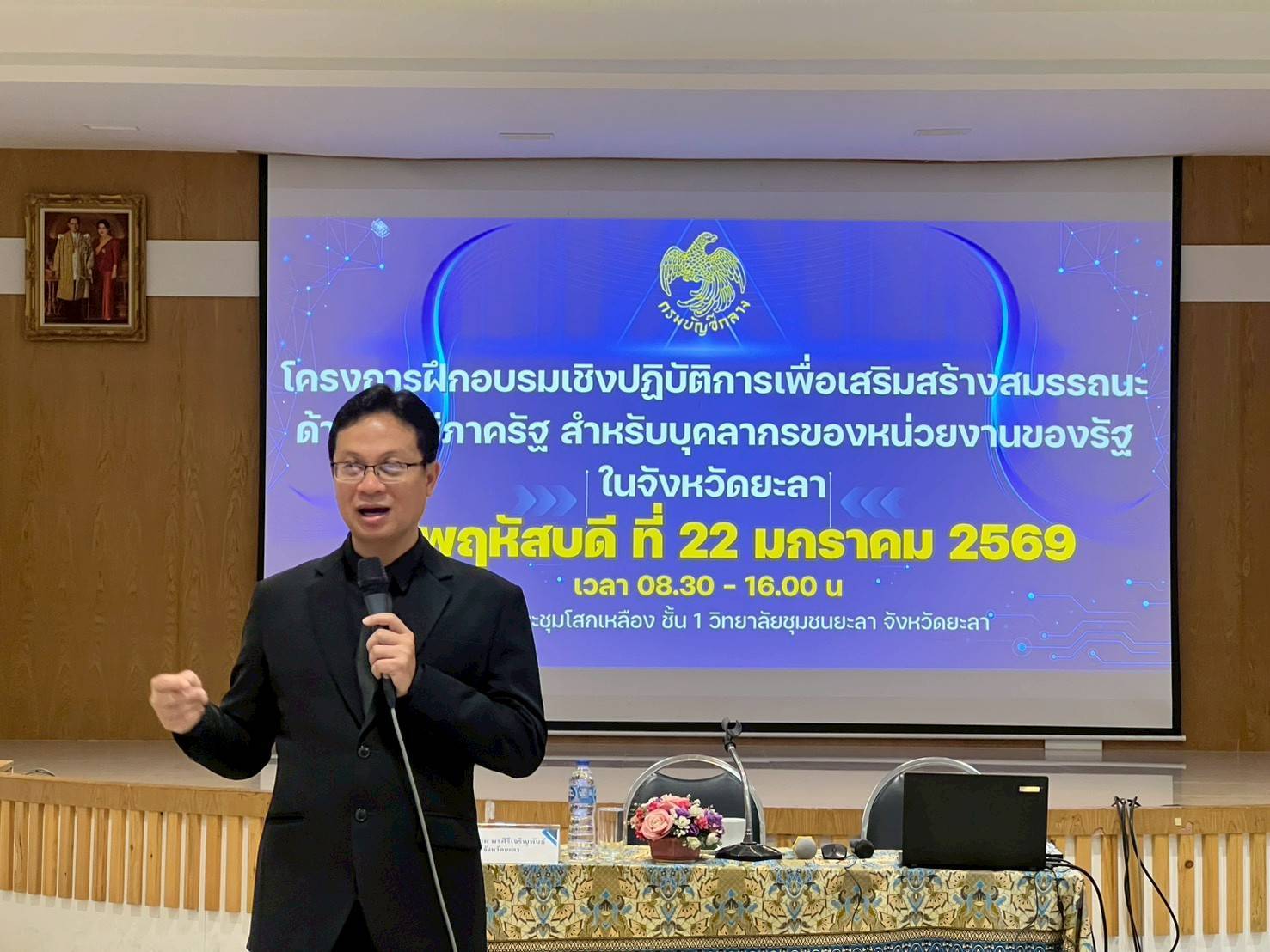 วันพฤหัสบดี ที่ 22 มกราคม 2569 นายไรฮ้าน กองสิน ผู้อำนวยการวิทยาลัยการอาชีพนครยะลา มอบหมายให้ บุคลากรทางการศึกษา เข้าร่วมโครงการฝึกอบรมเชิงปฏิบัติการเพื่อเสริมสร้างสมรรถนะด้านบัญชีภาครัฐ สำหรับบุคลากรของหน่วยงานของรัฐในจังหวัดยะลา ณ ห้องประชุมโสกเหลือง ชั้น 1 วิทยาลัยชุมชนยะลา จังหวัดยะลา