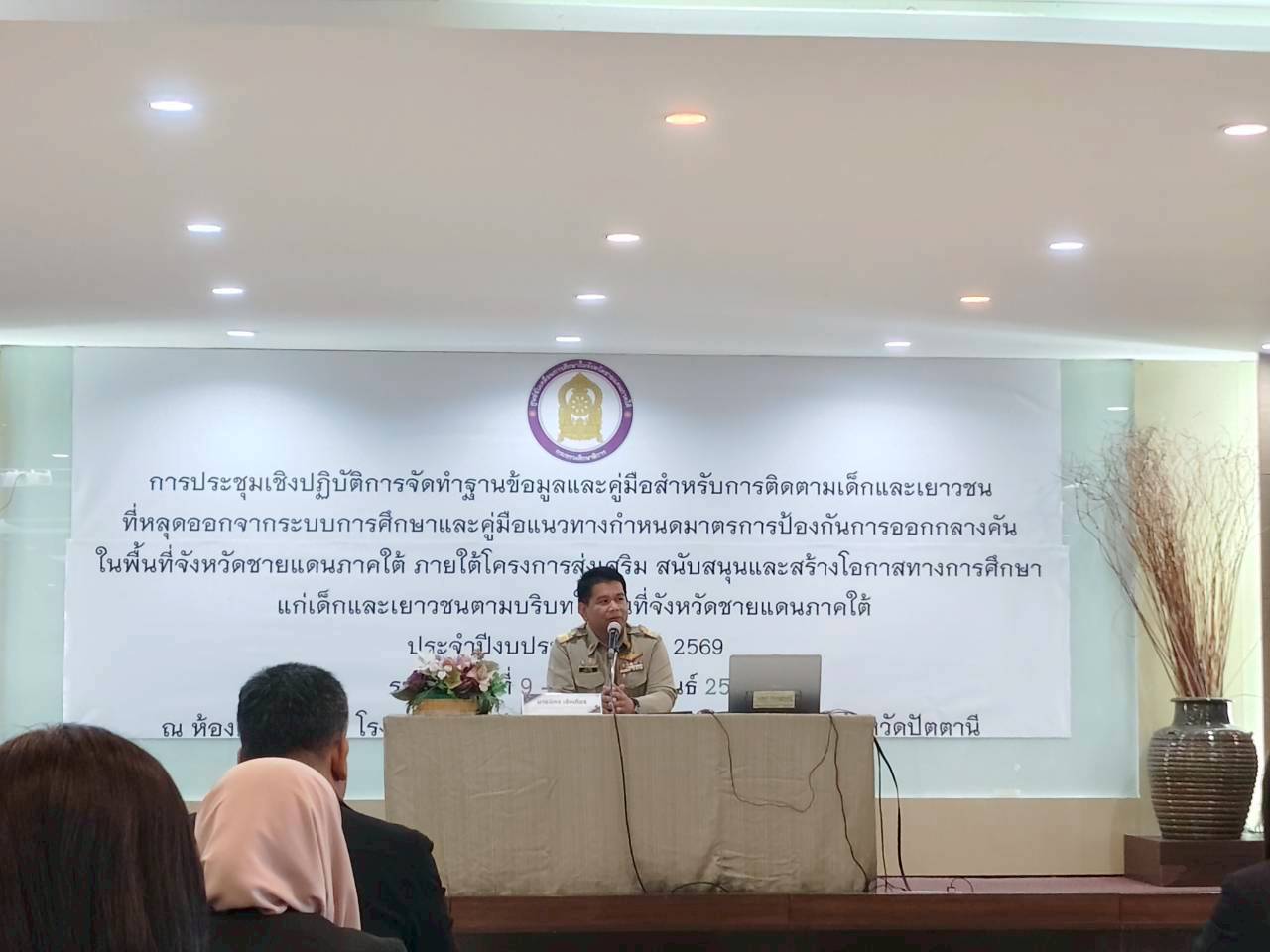 วันจันทร์ ที่ 9 กุมภาพันธ์ 2569 นายไรฮ้าน กองสิน ผู้อำนวยการวิทยาลัยการอาชีพนครยะลา มอบหมายให้ นางสาวเบญจมาพร บุญแนบ เข้าร่วมประชุมเชิงปฏิบัติการจัดทำฐานข้อมูลและคู่มือสำหรับการติดตามเด็กและเยาวชนที่หลุดออกจากระบบการศึกษาและคู่มือแนวทางกำหนดมาตรการป้องกันการออกกลางคันในพื้นที่จังหวัดชายแดนภาคใต้ ภายใต้โครงการส่งเสริม สนับสนุนและสร้างโอกาสทางการศึกษาแก่เด็กและเยาวชนตามบริบทในพื้นที่จังหวัดชายแดนภาคใต้ ประจำปีงบประมาณ พ.ศ. 2569 ระหว่างวันที่ 9 - 10 กุมภาพันธ์ 2569 โดยมี นายนิกร เซ้งเถียร ผู้อำนวยการศูนย์ขับเคลื่อนการศึกษาในจังหวัดชายแดนภาคใต้ เป็นประธาน ณ ห้องประชุมศรีนาฆารา ชั้น 3 โรงแรมเซาท์เทิร์น วิว จังหวัดปัตตานี