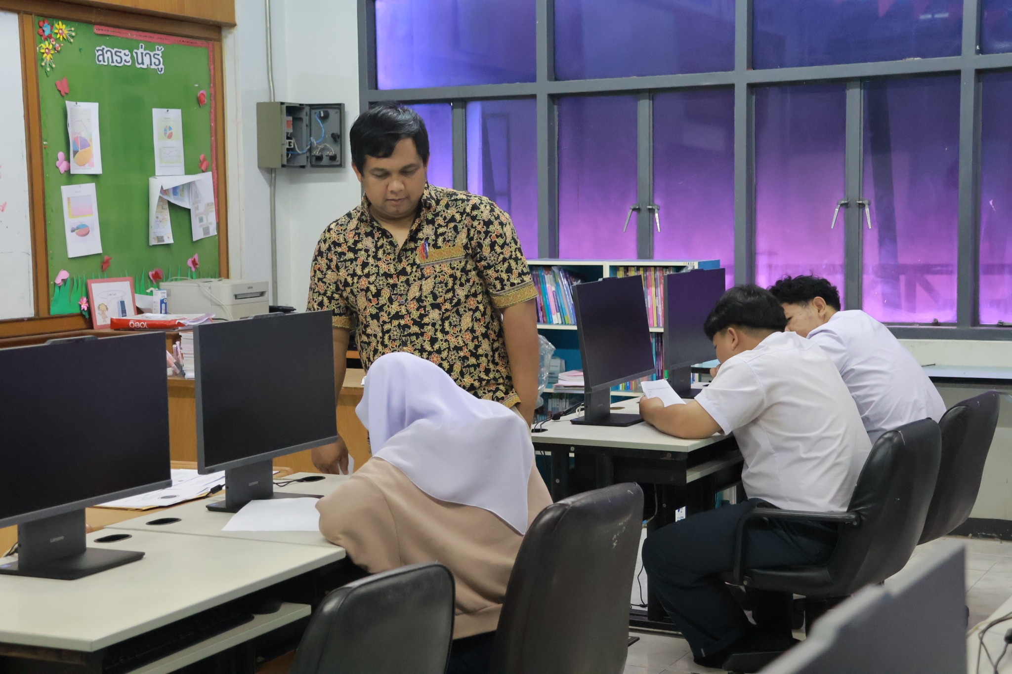635293427 896807483279031 1433649048854822153 nวันพฤหัสบดี ที่ 19 กุมภาพันธ์ 2569 นายไรฮ้าน กองสิน ผู้อำนวยการวิทยาลัยการอาชีพนครยะลา พร้อมด้วย นายอาหามะ ดือเร๊ะ รองผู้อำนวยการ ฝ่ายพัฒนากิจการนักเรียน นักศึกษา ตรวจความเรียบร้อยของนักเรียน นักศึกษา พร้อมเยี่ยมและให้กำลังใจกับนักเรียน นักศึกษา ในการสอบมาตรฐานวิชาชีพ ประจำปีการศึกษา 2568 ระดับชั้น ปวช.3 และ ปวส.2 ที่กำลังจะสำเร็จการศึกษา ต้องผ่านการประเมินมาตรฐานวิชาชีพ ตามประกาศสำนักงานคณะกรรมการการอาชีวศึกษา ระหว่างวันที่ 19-20 กุมภาพันธ์ 2569 ณ วิทยาลัยการอาชีพนครยะลา