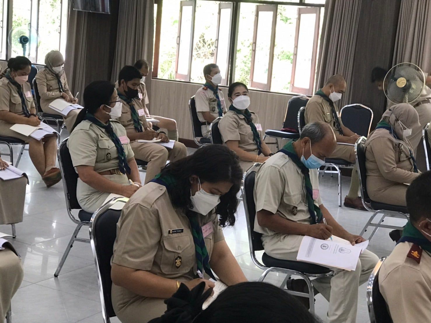 วันจันทร์ ที่ 28 กุมภาพันธ์ 2565 นายภาณุวัฒน์ บุญยะรัตน์ ผู้อำนวยการวิทยาลัยการอาชีพนครยะลา พร้อมด้วยนายอับดุลลาเตะ กาเจ ผู้กำกับลูกเสือ เข้าร่วมโครงการการฝึกอบรมผู้บังคับบัญชาลูกเสือจิตอาสาพระราชทาน ระดับสถานศึกษา สังกัดสำนักงานลูกเสือจังหวัดยะลา รุ่นที่ 2 ซึ่งจัดขึ้น ระหว่างวันที่ 27-28 กุมภาพันธ์ - 1 มีนาคม 2565 เพื่อพัฒนาบุคลากรทางการลูกเสือ ให้มีความรู้ ความเข้าใจหลักการและวิธีการของโครงการจิตอาสาพระราชทาน สามารถฝึกอบรมลูกเสือและตั้งหน่วยลูกเสือจิตอาสาพระราชทานในสถานศึกษา ณ ห้องประชุมรายา สำนักงานเขตพื้นที่การศึกษาประถมศึกษายะลา เขต 1