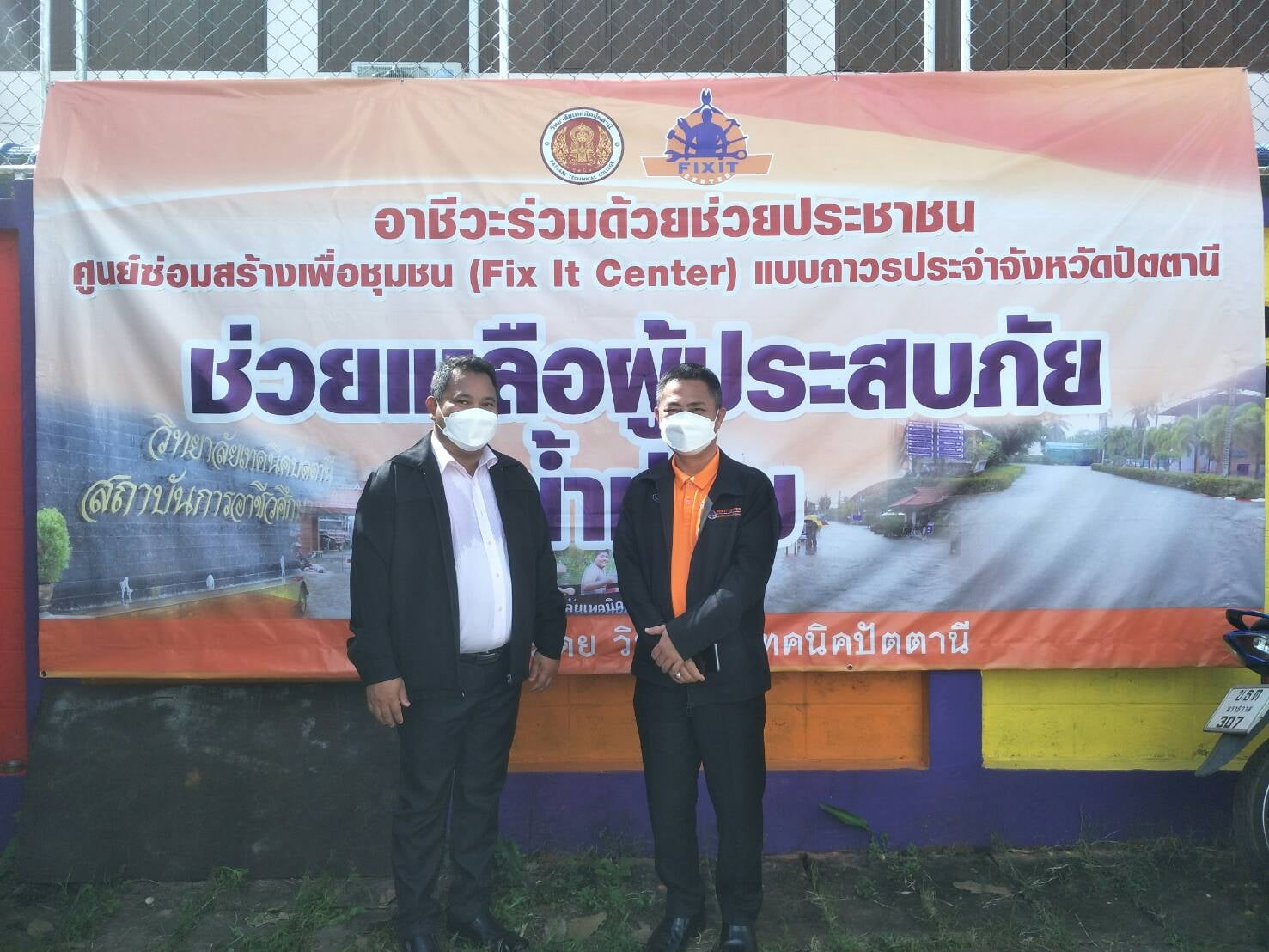 วันพฤหัสบดี ที่ 3 มีนาคม 2565 นายภาณุวัฒน์ บุญยะรัตน์ ผู้อำนวยการวิทยาลัยการอาชีพนครยะลา มอบหมายให้นายชัยพันธุ์ กชกันพยันต์ รองผู้อำนวยการ ลงพื้นที่ช่วยเหลือผู้ประสบภัยน้ำท่วม เพื่อดำเนินโครงการพัฒนารูปแบบและยกระดับคุณภาพศูนย์ซ่อมสร้างเพื่อชุมชน (Fix it Center) ประจำปีงบประมาณ 2565 (จิตอาสา สนับสนุนบรรเทาอุทกภัย) ณ โรงเรียนบ้านตือระมิตรภาพที่ 172 อำเภอสุไหงโก-ลก จังหวัดนราธิวาส