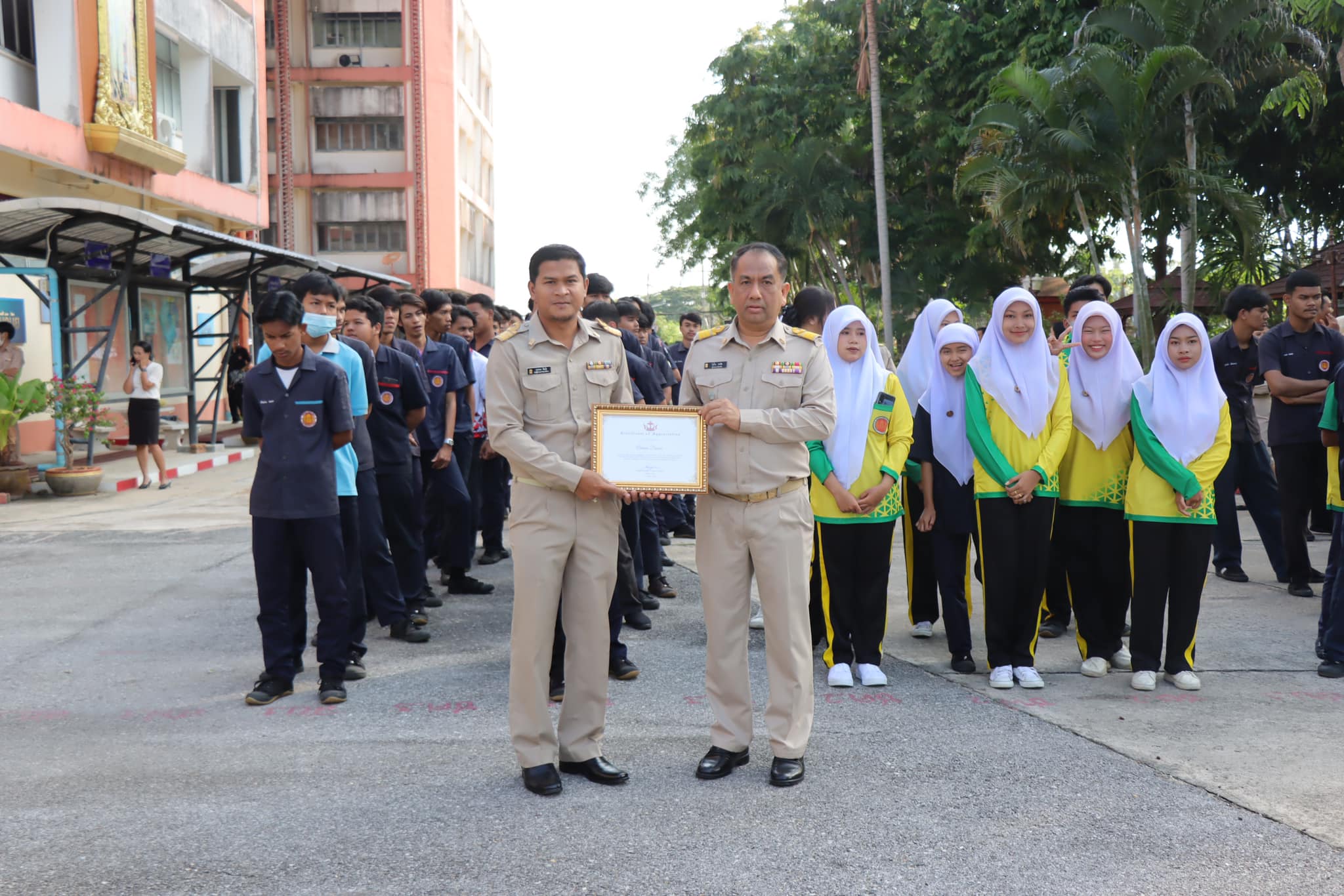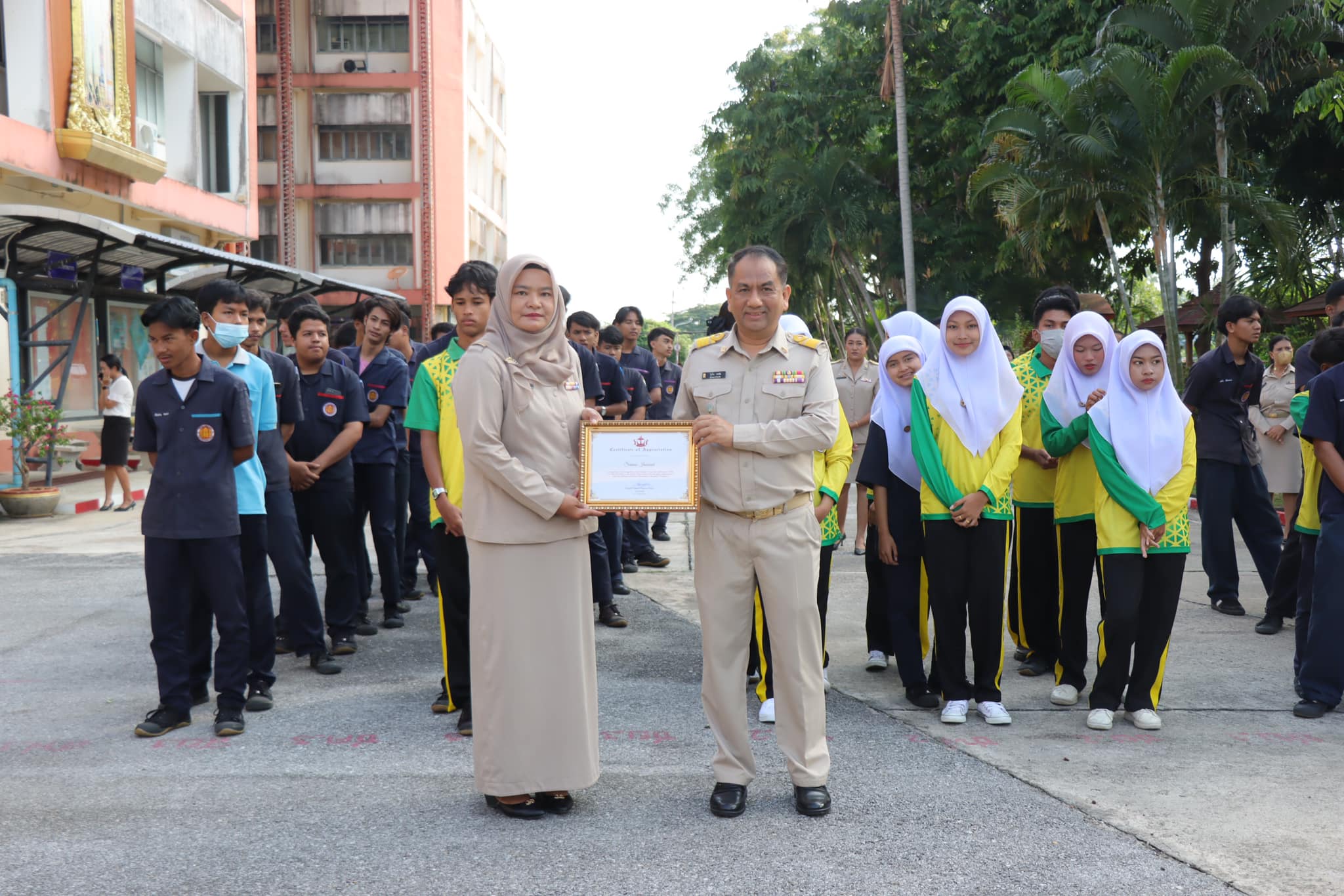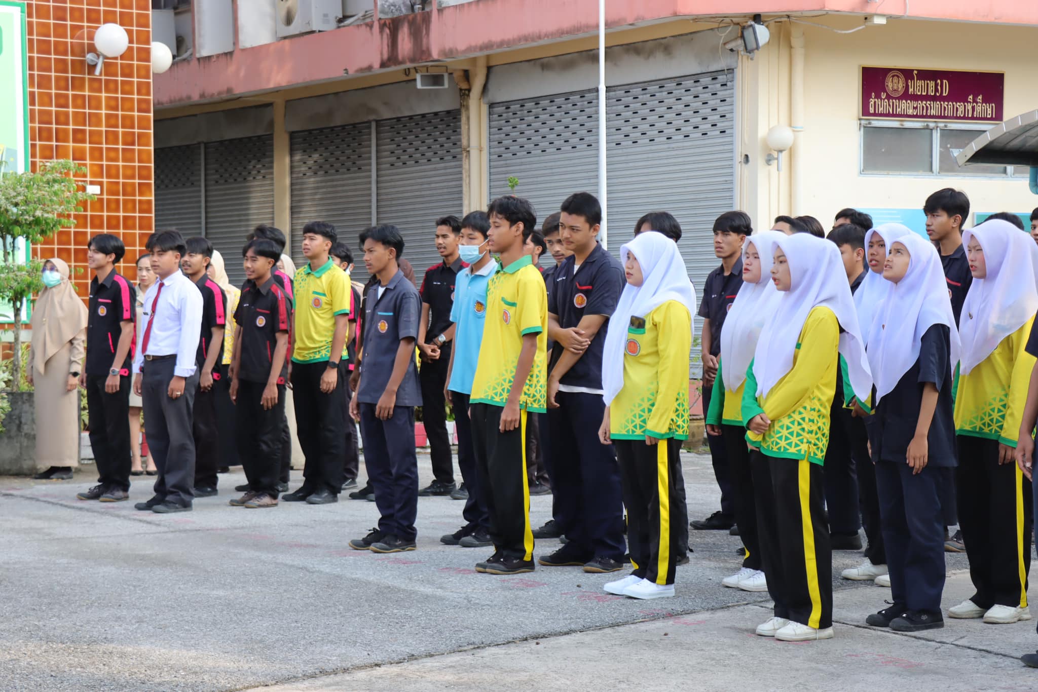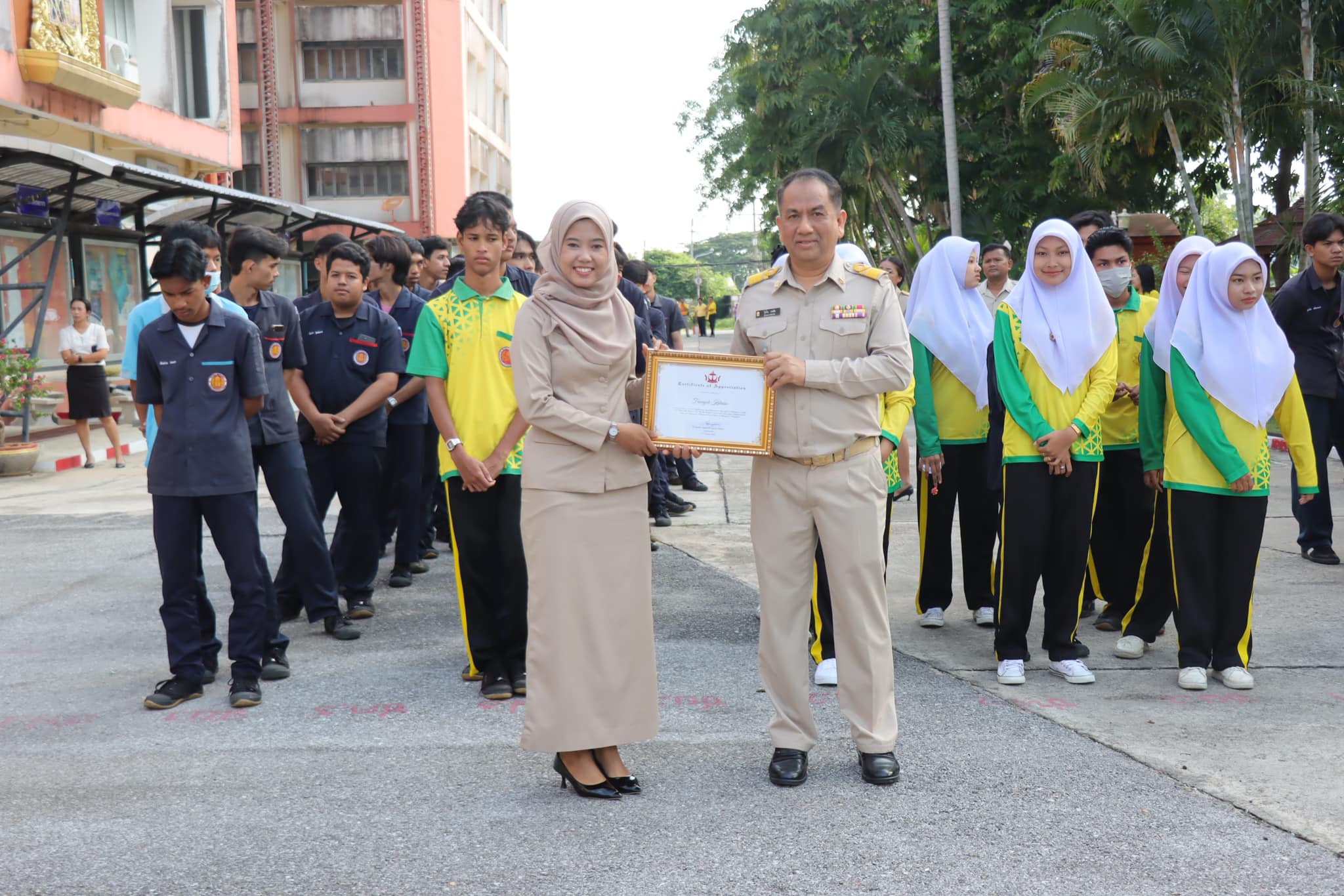 458180260 493475196921079 7219723845242148173 nวันอังคาร ที่ 3 กันยายน 2567 วิทยาลัยการอาชีพนครยะลา พร้อมด้วยคณะผู้บริหาร คณะครู บุคลากรทางการศึกษา และนักเรียน นักศึกษา ดำเนินกิจกรรมการเข้าแถวหน้าเสาธง ของนักเรียน นักศึกษา วิทยาลัยการอาชีพนครยะลา โดยมีนายมูฮำหมัด เจะสนิ ครูเวรวันนี้ พบปะพูดคุยกับนักเรียน นักศึกษา ชี้แจงข้อมูลข่าวสารให้กับนักเรียน นักศึกษาทราบ และให้โอวาทกับนักเรียน นักศึกษา และมอบเกียรติบัตรให้กับครู และนักศึกษาหลักสูตรวิชาชีพสระยะสั้น สาขาวิชาผ้าและเครื่องแต่งกาย เข้าร่วมมหกรรมผ้าไหม 2567 ไหมไทยสู่เส้นทางโลกครั้งที่ 13 งานแฟชั่นผ้าไหมไทยสู่สากล วันที่ 31 สิงหาคม 2567 ณ หอประชุมกองทัพเรือ  ณ บริเวณหน้าอาคารวิทยบริการ วิทยาลัยการอาชีพนครยะลา