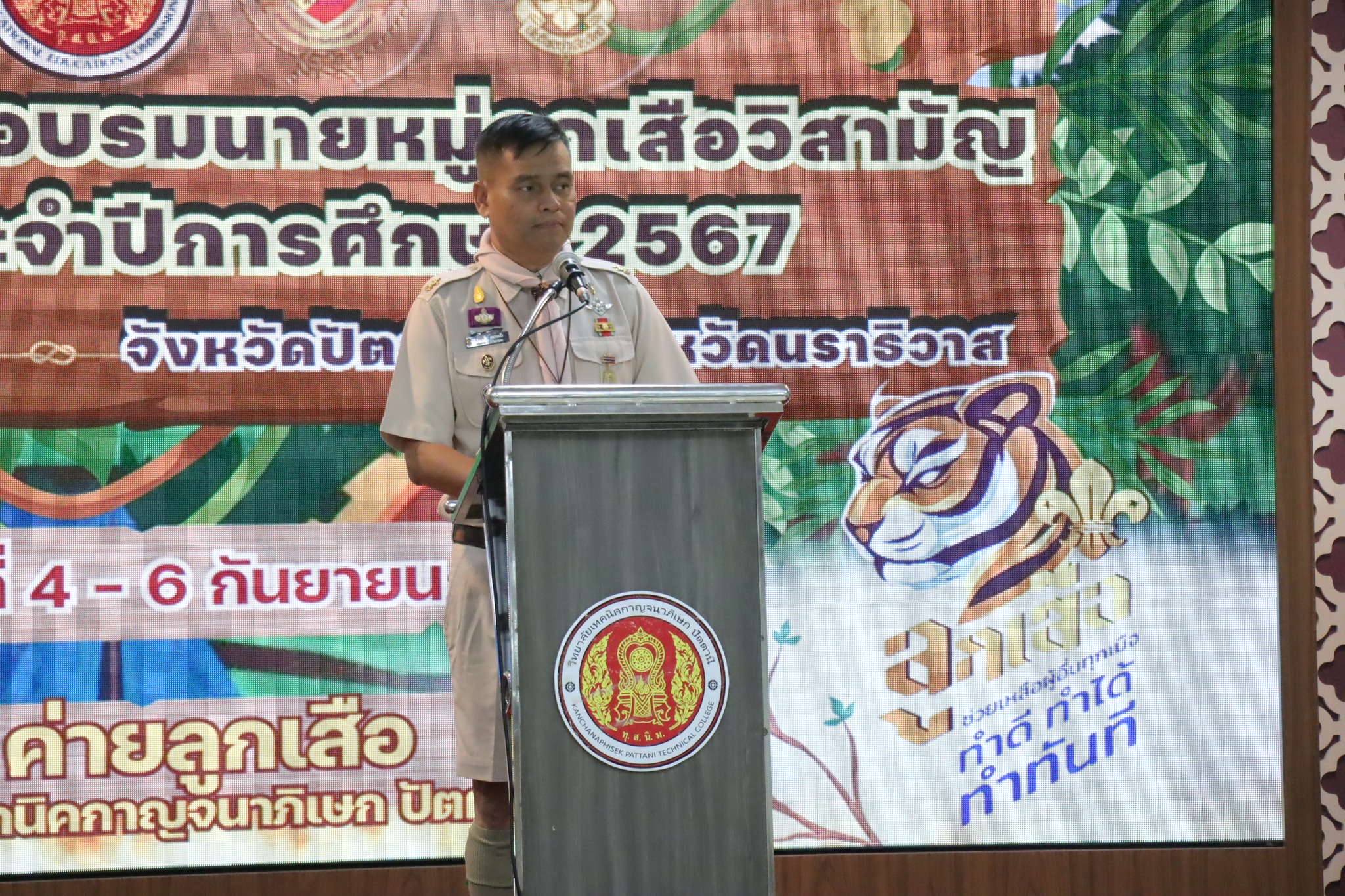 วันพุธ ที่ 4 กันยายน 2567 นายไรฮ้าน กองสิน ผู้อำนวยการวิทยาลัยการอาชีพนครยะลา นายอาหามะ ดือเร๊ะ รองฝ่ายพัฒนากิจการนักเรียนนักศึกษา และฝ่ายแผนงานฯ และคณะครู เข้าร่วมโครงการอบรมนายหมู่ลูกเสือวิสามัญ ประจำปีการศึกษา 2567 จังหวัดยะลา จังหวัดปัตตานี จังหวัดนราธิวาส ระหว่างวันที่ 4-6 กันยายน 2567 ณ ค่ายลูกเสือ วิทยาลัยเทคนิคกาญจนาภิเษกปัตตานี