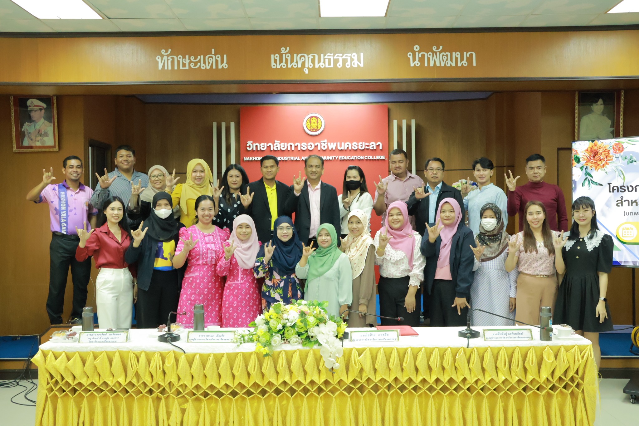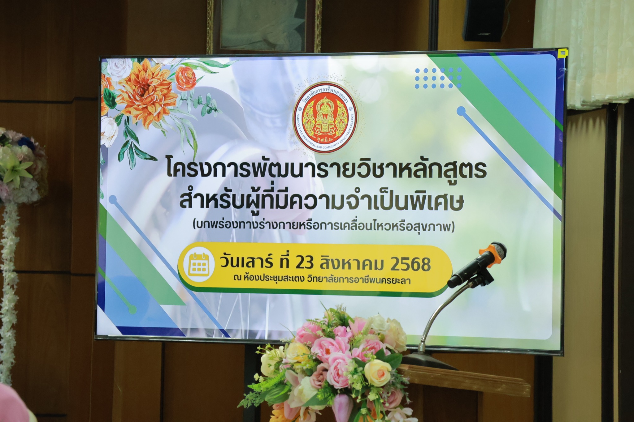 วันเสาร์ ที่ 23 สิงหาคม 2568 นายไรฮ้าน กองสิน ผู้อำนวยการวิทยาลัยการอาชีพนครยะลา นายชัยพันธุ์ กชกันพยันต์ รองผู้อำนวยการ ฝ่ายบริหารทรัพยากร นายอาหามะ ดือเร๊ะ รองผู้อำนวยการฝ่าย พัฒนากิจการนักเรียน นักศึกษา นางสาววรารัตน์ เครือทอง ครู ทำหน้าที่ รองผู้อำนวยการฝ่ายแผนงานและความร่วมมือ คณะครู และบุคลากรทางการศึกษา ดำเนินโครงการพัฒนารายวิชาหลักสูตร สำหรับผู้ที่มีความจำเป็นพิเศษ (บกพร่องทางร่างกายหรือการเคลื่อนไหวหรือสุขภาพ) ณ ห้องประชุมสะเตง วิทยาลัยการอาชีพนครยะลา
