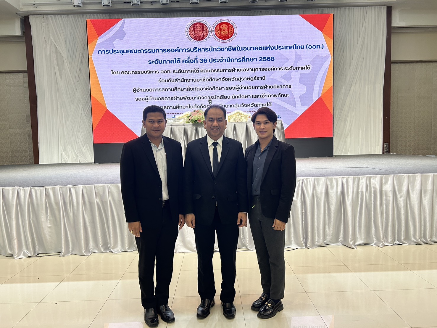 575172593 813460921613688 227399135854716909 nวันอังคาร ที่ 4 พฤศจิกายน 2568 นายไรฮ้าน กองสิน ผู้อำนวยการวิทยาลัยการอาชีพนครยะลา นายอาหามะ ดือเร๊ะ รองผู้อำนวยการฝ่าย พัฒนากิจการนักเรียน นักศึกษา และนายณิชาวีร์ อาบู ครูสาขาวิชาคหกรรมศาสตร์ทั่วไป กลุ่มวิชาเสริมสวย-ตัดผมชาย เข้าร่วมการประชุมคณะกรรมการองค์การบริหารนักวิชาชีพในอนาคตแห่งประเทศไทย (อวท.) ระดับภาคใต้ ครั้งที่ 36 ประจำปีการศึกษา 2568 โดย คณะกรรมบริหาร อวท. ระดับภาคใต้ คณะกรรมการฝ่ายเลขานุการองค์การ ระดับภาคใต้ ร่วมกับสำนักงานอาชีวศึกษาจังหวัดสุราษฎร์ธานี ผู้อำนวยการสถานศึกษาสังกัดอาชีวศึกษา รองผู้อำนวยการฝ่ายวิชาการ