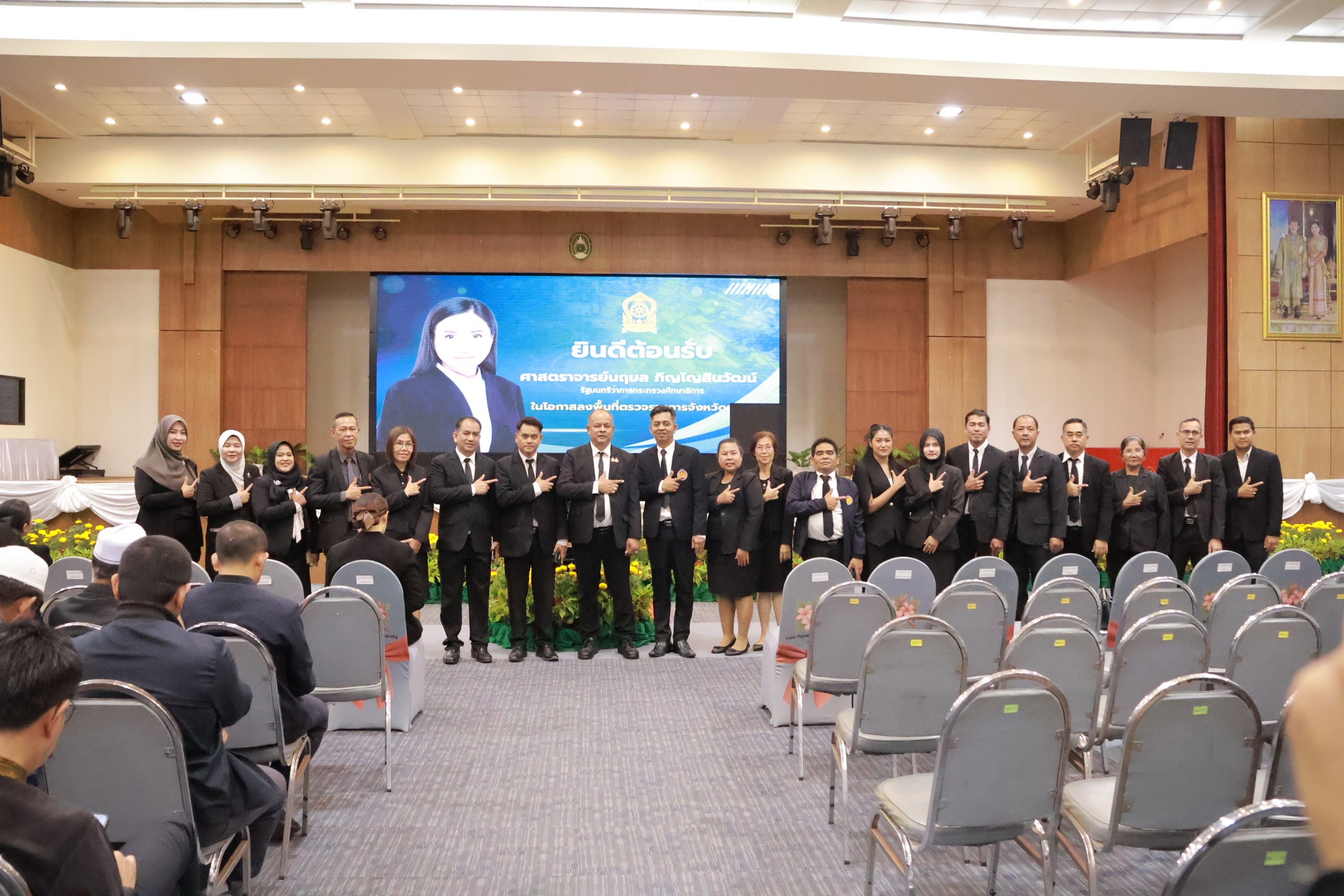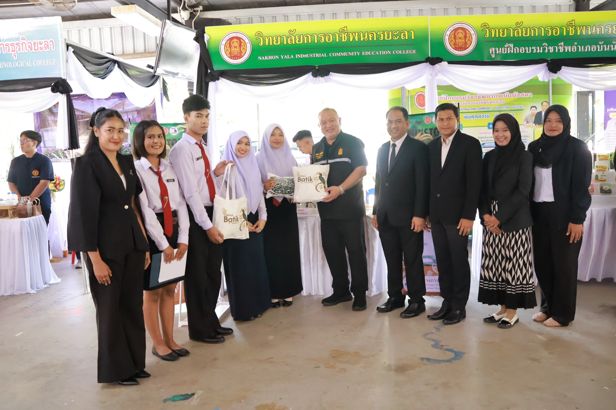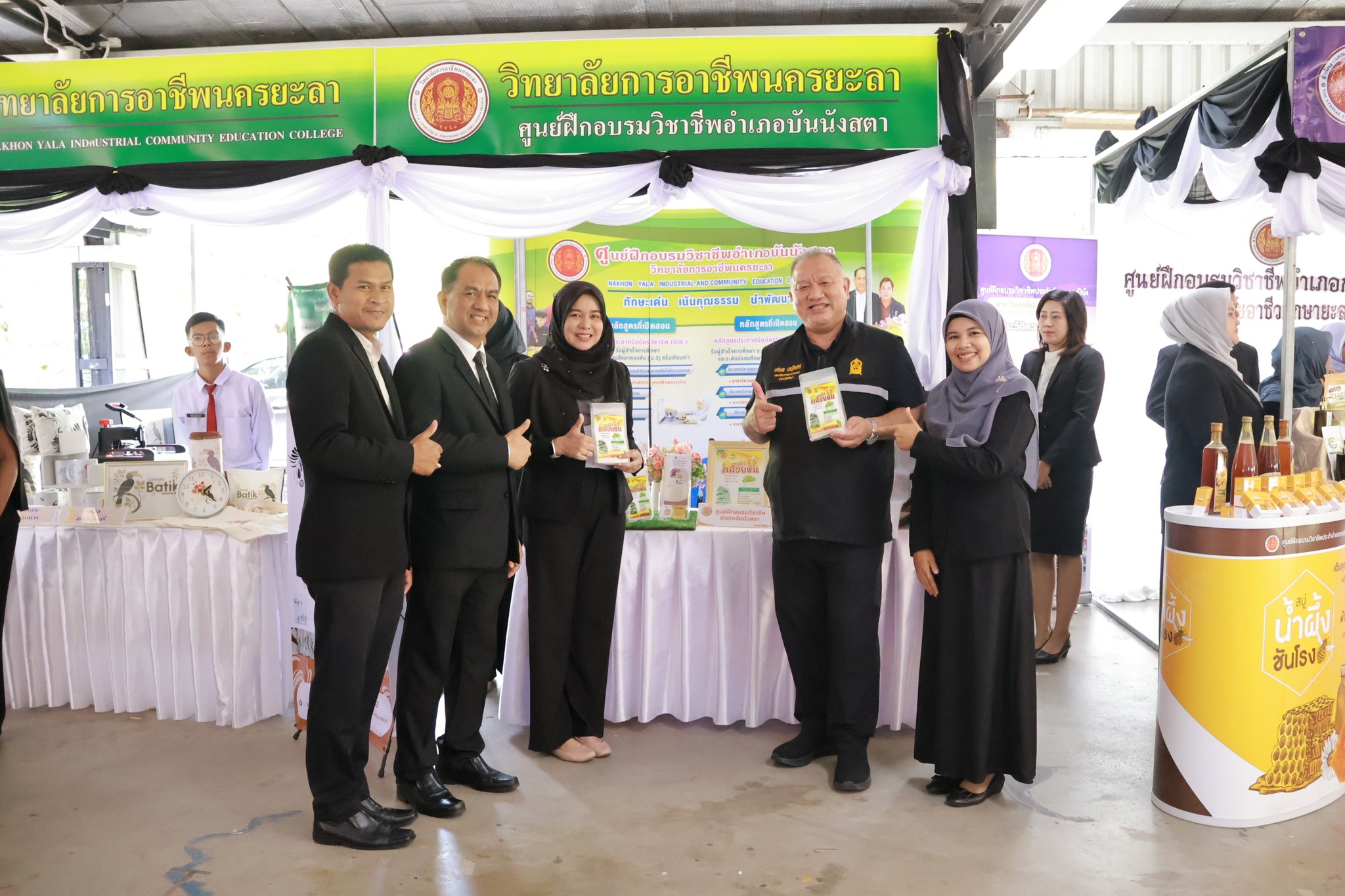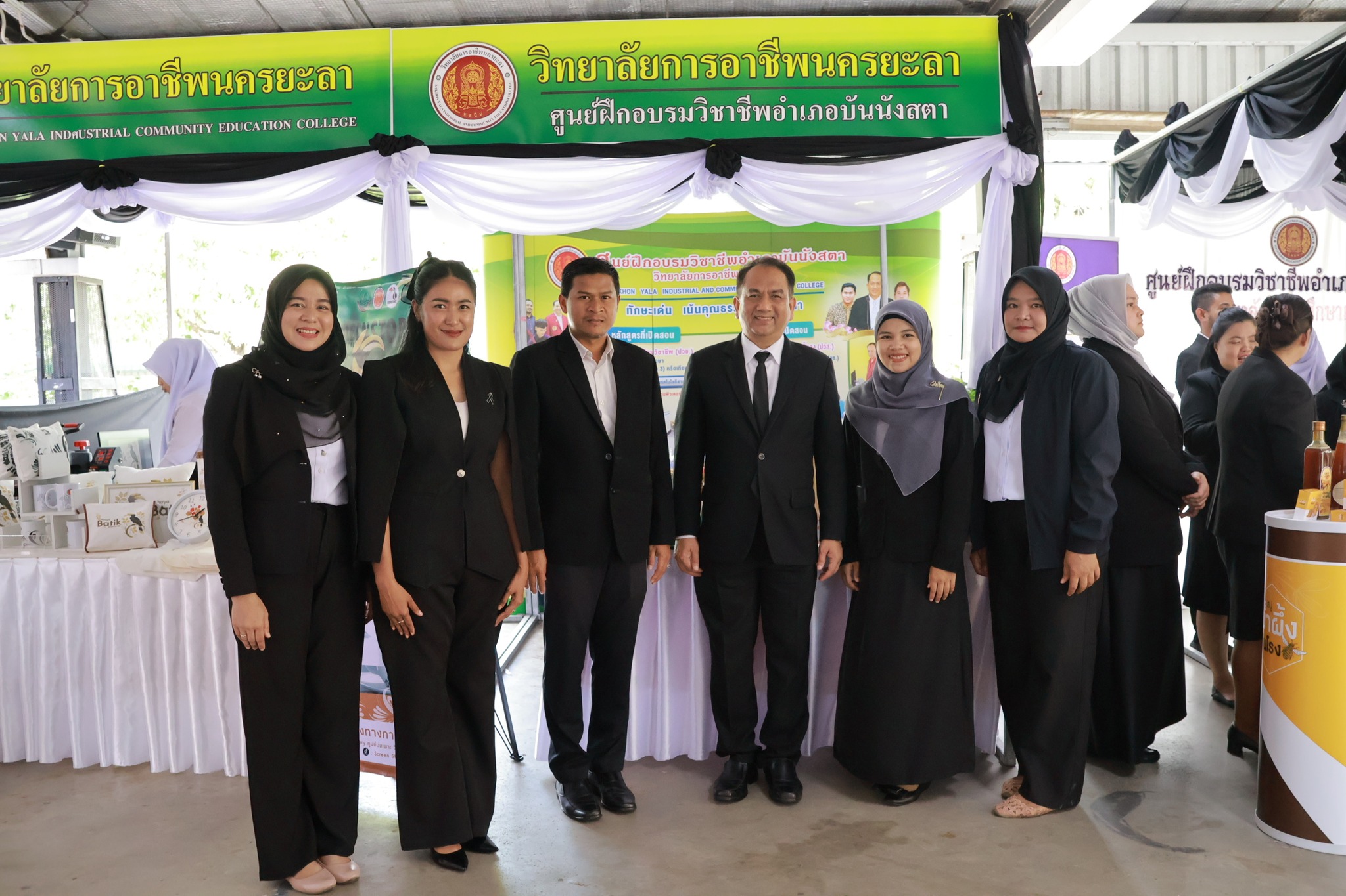 วันเสาร์ ที่ 8 พฤศจิกายน 2568 วิทยาลัยการอาชีพนครยะลา พร้อมด้วยคณะผู้บริหาร คณะครู บุคลากรทางการศึกษา นักเรียน นักศึกษา และศูนย์ฝึกอบรมวิชาชีพประจำอำเภอบันนังสตา ร่วมให้การต้อนรับ ศาสตราจารย์ นฤมล ภิญโญสินวัฒน์ รัฐมนตรีว่าการกระทรวงศึกษาธิการ นายยศพล เวณุโกเศศเลขาธิการคณะกรรมการการอาชีวศึกษา นายณรงค์ชัย เจริญรุจิทรัพย์ รองเลขาธิการคณะกรรมการการอาชีวศึกษา พร้อมคณะผู้ติดตาม ในโอกาสลงพื้นที่ตรวจติดตามการดำเนินงานทางการศึกษาในจังหวัดยะลา พร้อมเยี่ยมชมการจัดนิทรรศการ ณ ห้องประชุมมหาวิทยาลัยราชภัฏยะลา