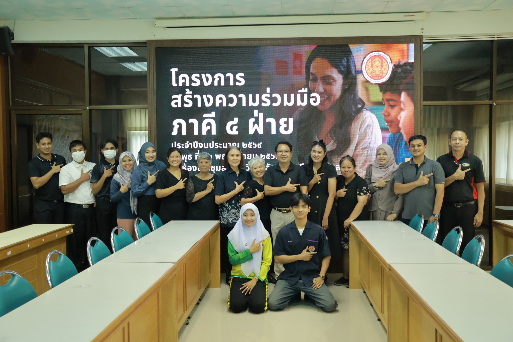 วันพุธ ที่ 12 พฤศจิกายน 2568 นายไรฮ้าน กองสิน ผู้อำนวยการวิทยาลัยการอาชีพนครยะลา มอบหมายให้ นายชัยพันธุ์ กชกันพยันต์ รองผู้อำนวยการ ฝ่ายบริหารทรัพยากร นางสาววรารัตน์ เครือทอง ครู ทำหน้าที่ รองผู้อำนวยการฝ่ายแผนงานและความร่วมมือ คณะครู บุคลากรทางการศึกษา ผู้ปกครอง และผู้นำชุมชน ดำเนินโครงการสร้างความร่วมมือภาคี 4 ฝ่าย ประจำปีการศึกษา 2568 ณ ห้องประชุมสะเตง วิทยาลัยการอาชีพนครยะลา